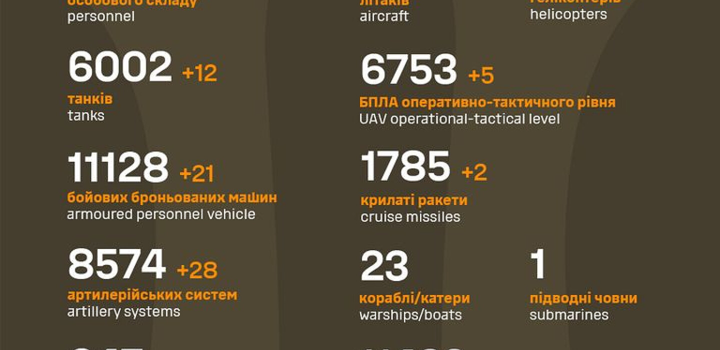As of January 4, 2024, the Armed Forces of Ukraine killed 780 Russian invaders and destroyed 12 tanks, 21 APVs, and 28 artillery systems of the enemy, according to the General Staff of the Armed Forces of Ukraine.